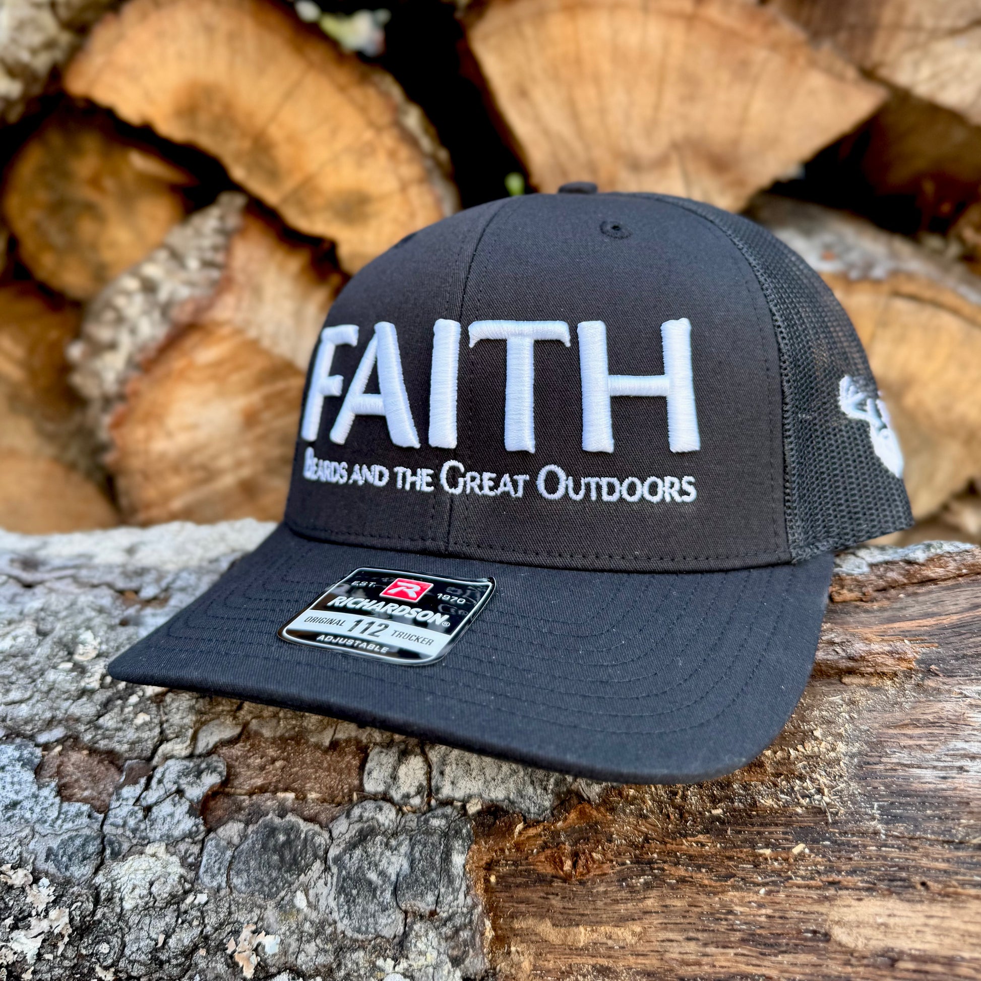 Introducing our Bold FAITH Hats: the perfect accessory for those who embrace their faith and love the great outdoors. Faith, Beards, and The Great Outdoors is our motto but most important and above all is our FAITH.