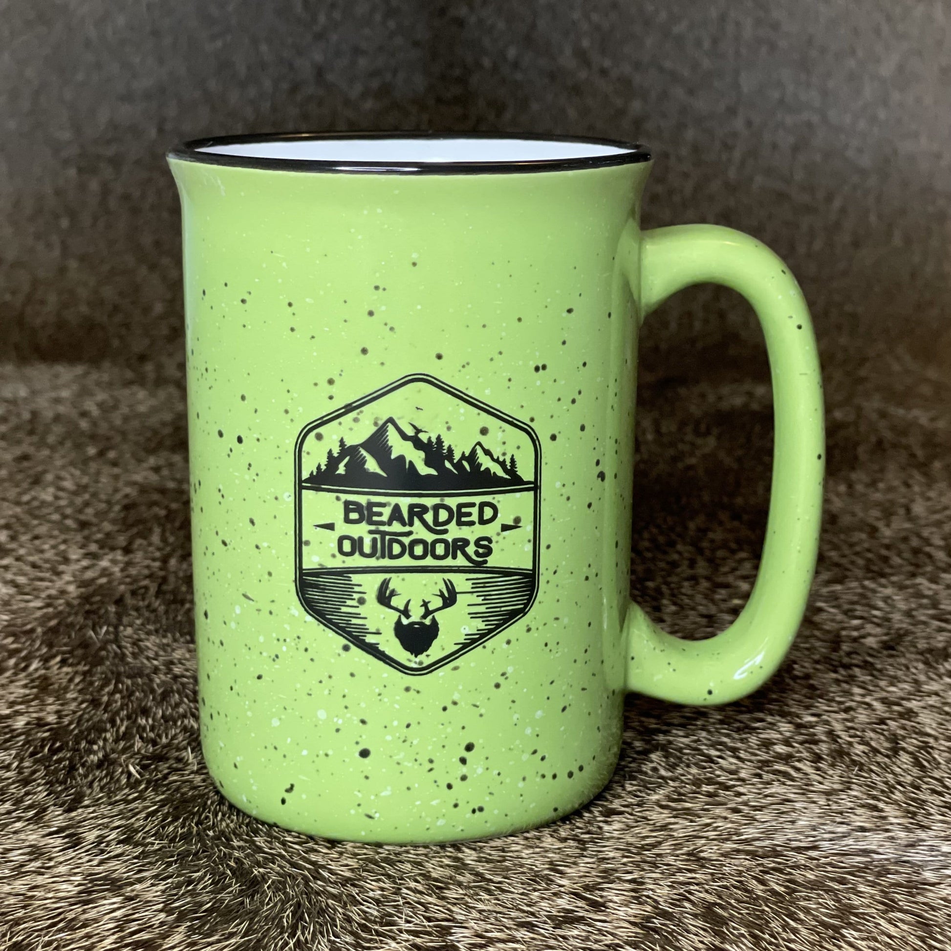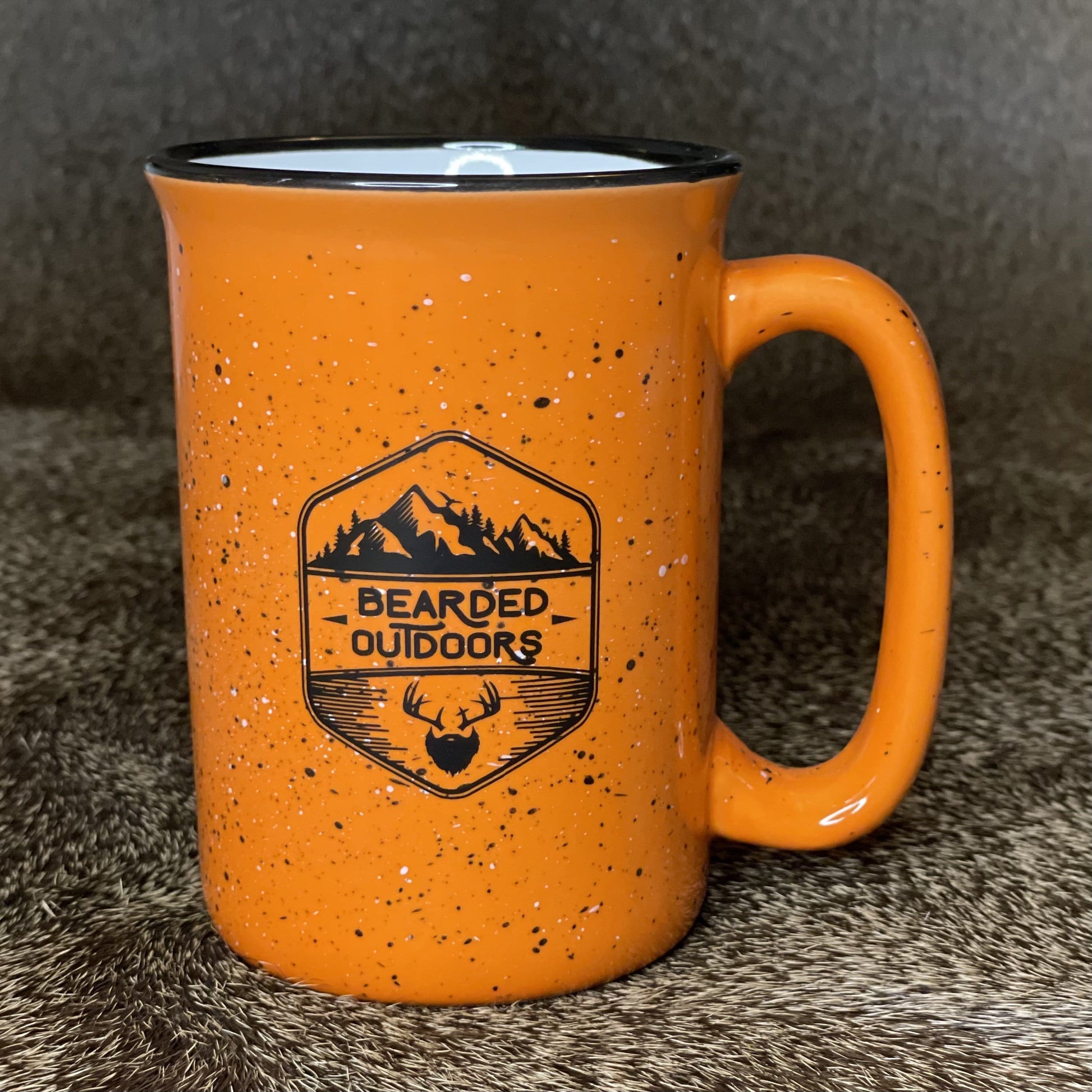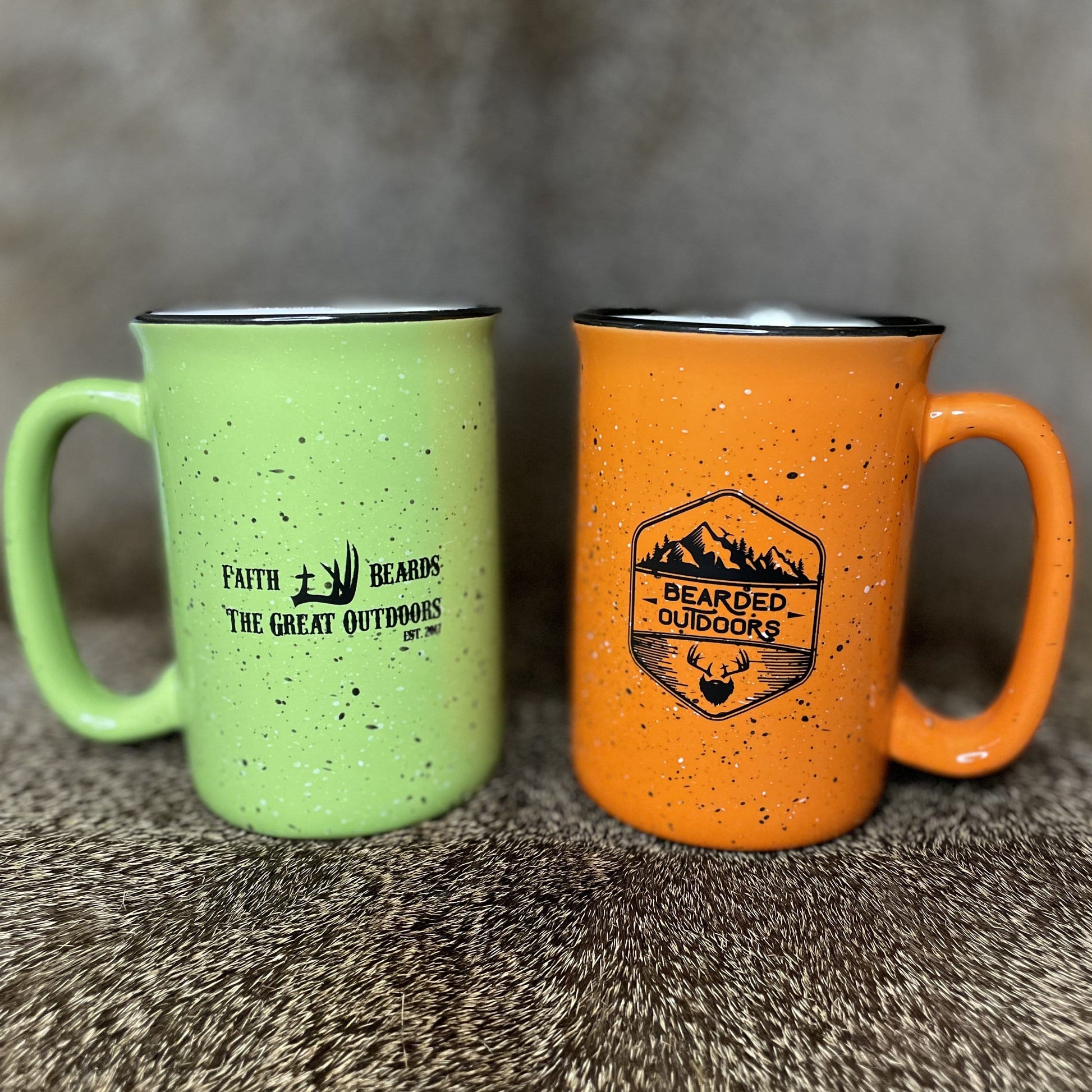 These awesome mugs hold 12 ounces of delicious coffee, tea, soup, or whatever else you’d like! Bearded Outdoors logo on one side, and our Redemption Shed Logo on the other.