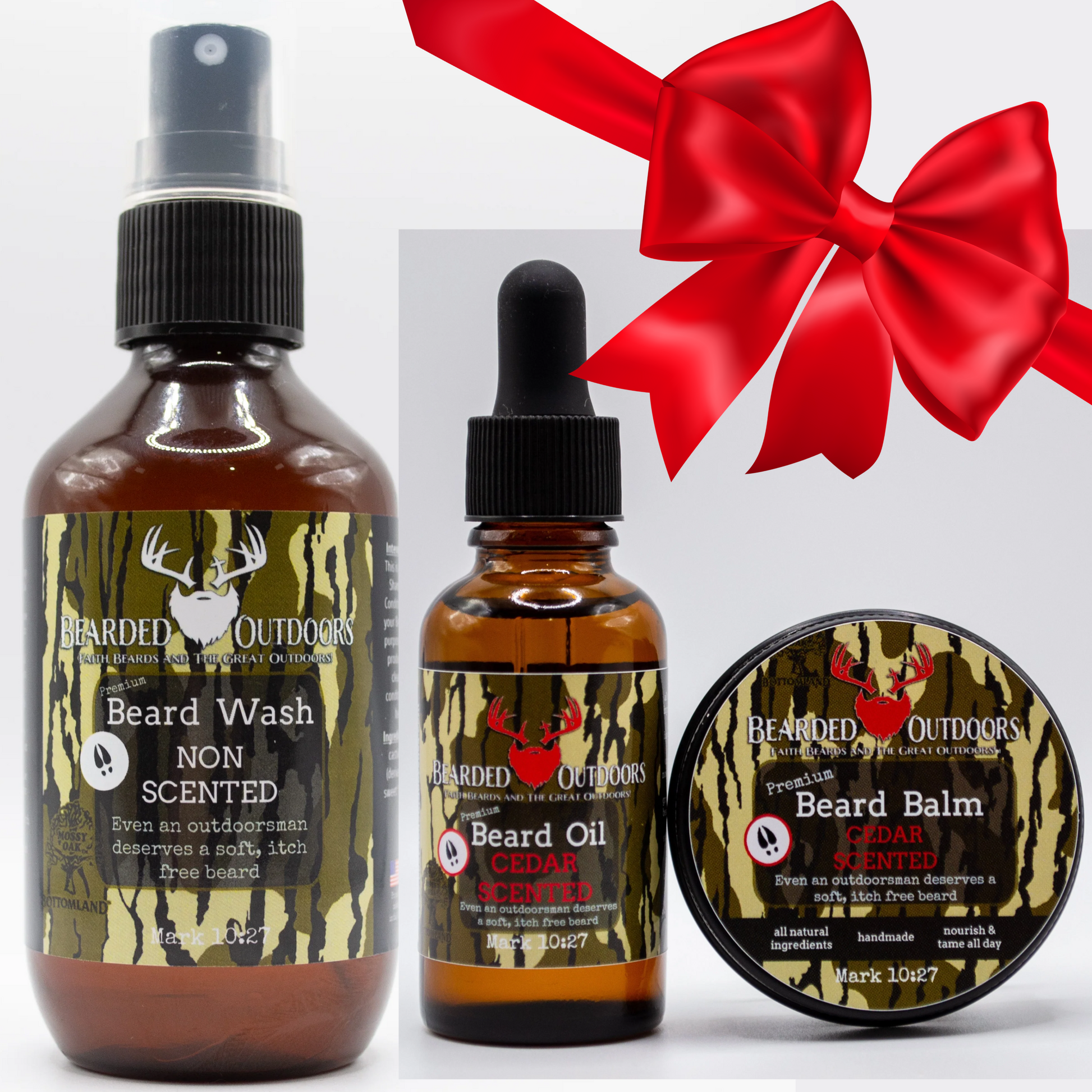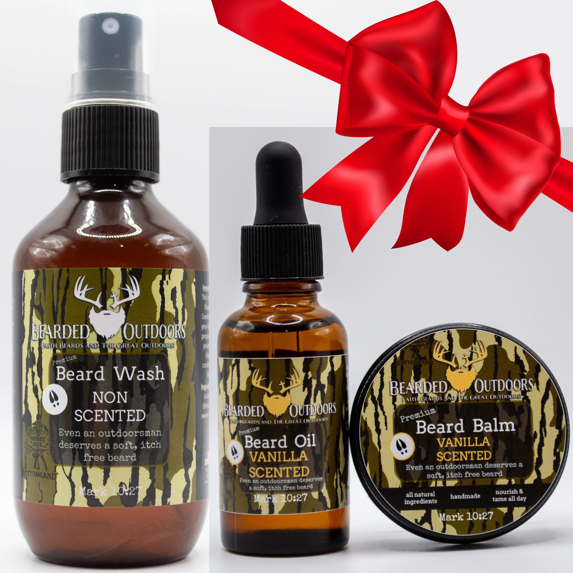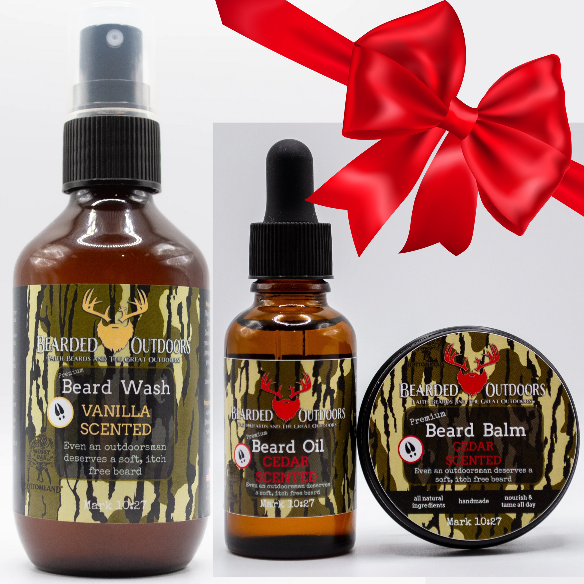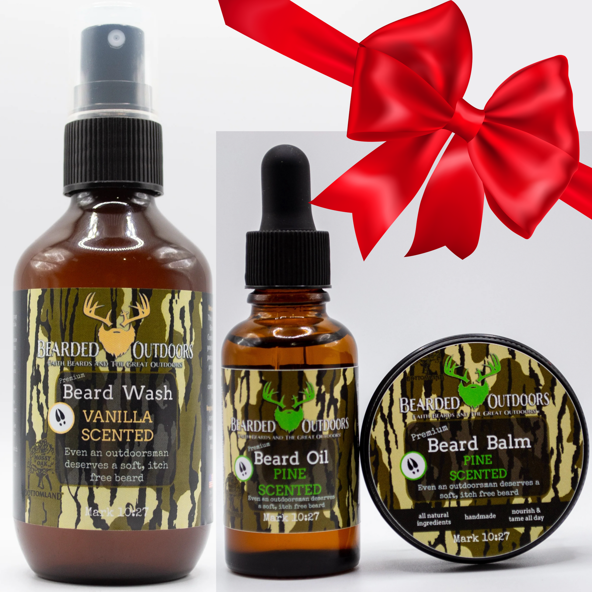 The outdoor product you have been waiting for! Introducing the all new Mossy Oak wrapped Beard Products! It only made sense to wrap your favorite beard products with your favorite camo patterns: Mossy Oak Bottomland and Mossy Oak Elements Agua